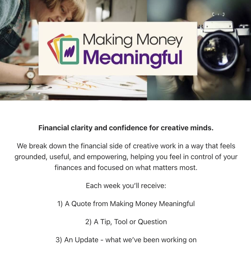 Making Money Meaningful is a new platform that breaks down the financial side of creative work in a way that feels grounded, useful, and empowering, helping you feel in control of your finances and focused on what matters most.